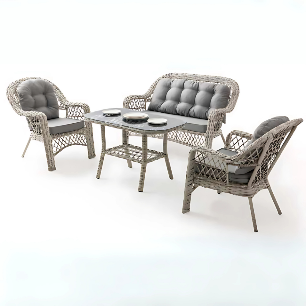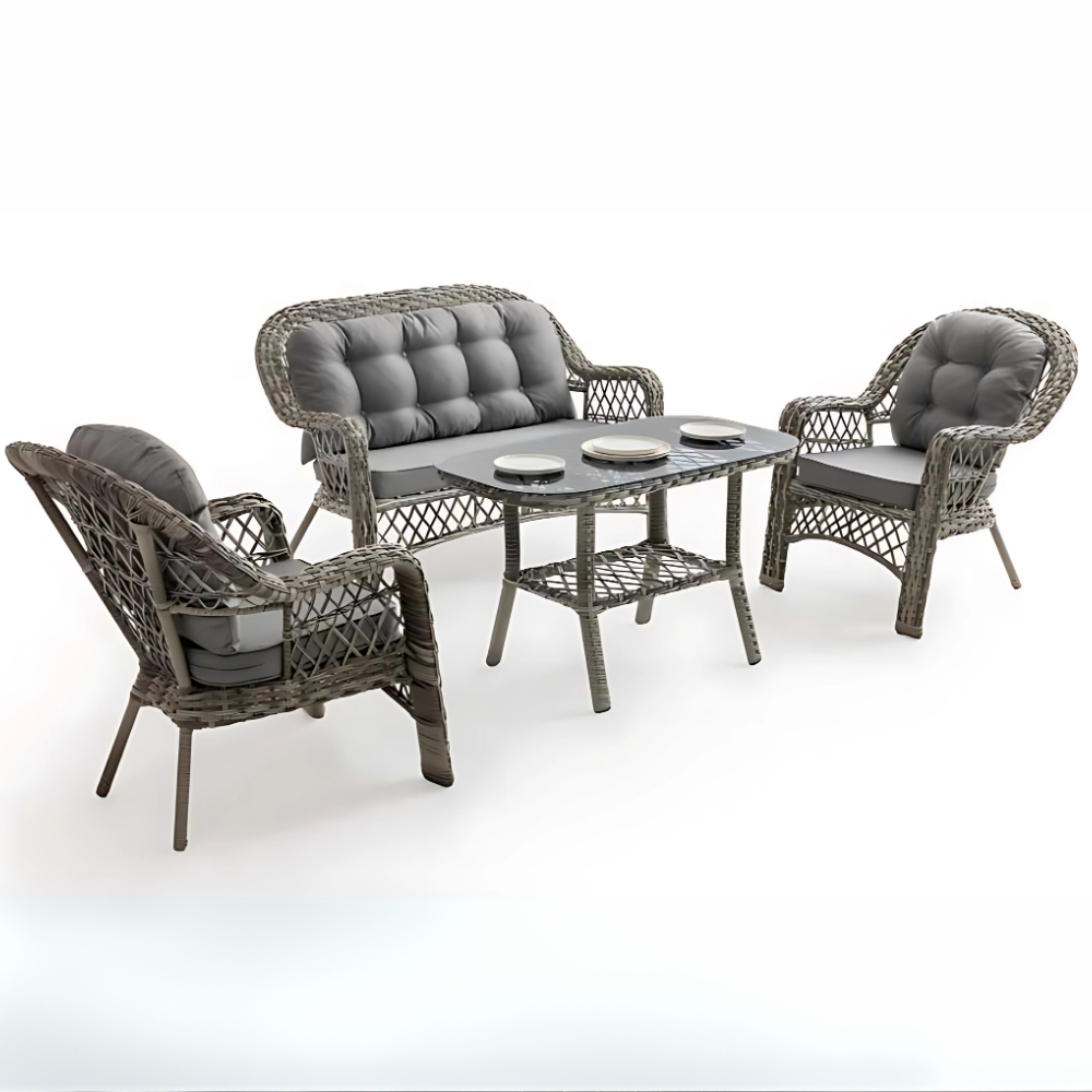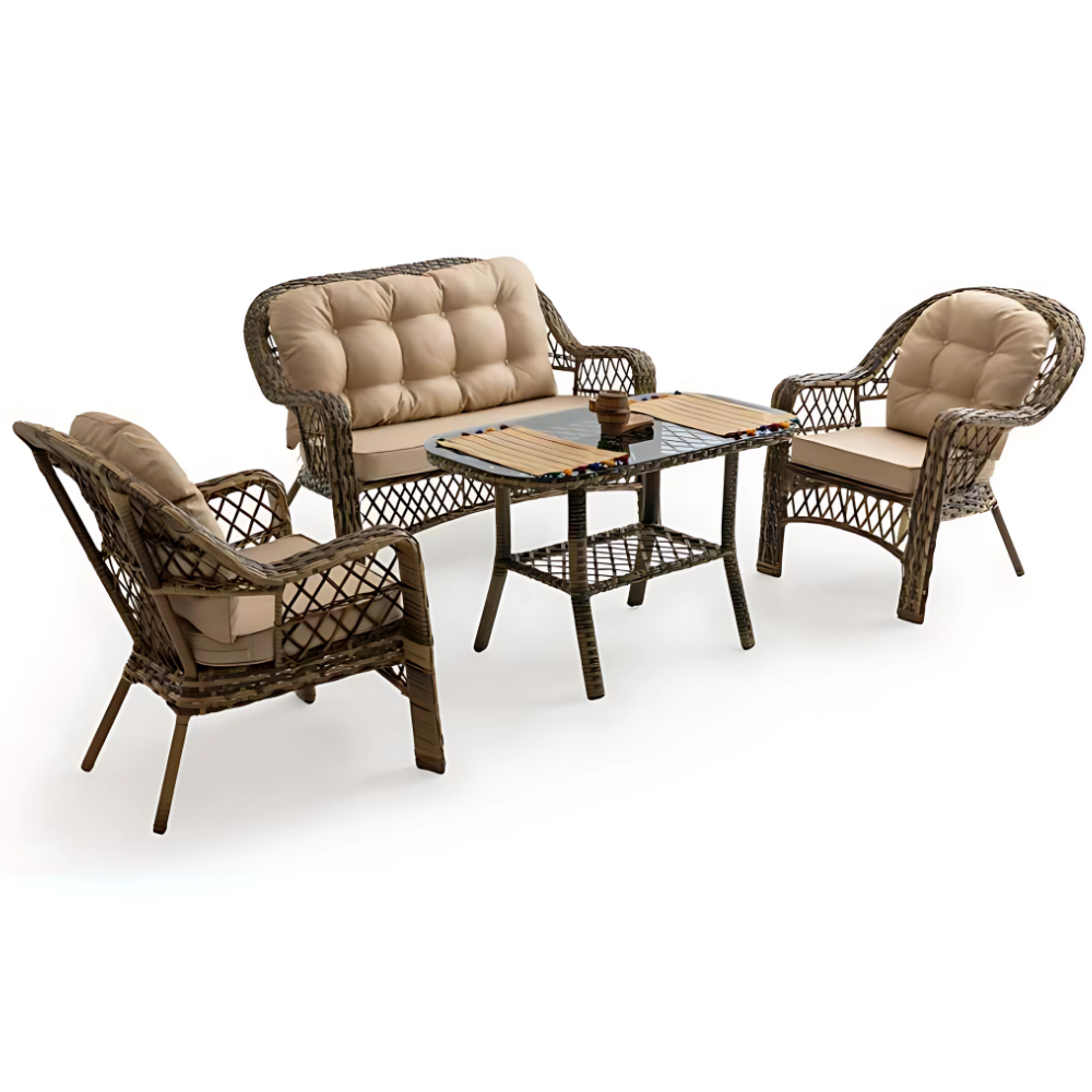• Birinci sınıf win-tech sentetik rattan malzeme kullanılan bahçe mobilya takımı, özel işçilik ile ustaca elde örülerek üretilmiştir.